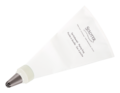 Vorbereitung: Den Spritzbeutel an der Spitze abschneiden und das Ansatzstück-Innenteil einsetzen. Anschließend können die Tüllen bei gefülltem Spritzbeutel von außen gewechselt werden.