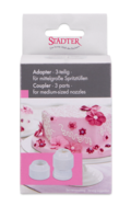 Durch unsere praktischen Adapter können Sie bei gefülltem Spritzbeutel die Tülle wechseln und sofort mit der anderen Tülle weiterdekorieren.