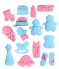 Modellier- oder Knetmasse in die Form eindrücken und sofort ausformen. Hier sind auch mehrfarbige Motivgestaltungen möglich. Lassen Sie Ihrer Fantasie freien Lauf. Nach dem Ausformen können Sie die Motive noch mit Speisefarben-Pulver oder mit Speisefarben-Stiften kolorieren.