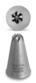Die Spritztüllen-Serie Fine Line in Profi-Qualität: feinste Dekorationen durch exakte Konturen der Spritzöffnung. Unsere kleinen Spritztüllen entsprechen den internationalen Tüllenbezeichnungen. Sie sind für besonders feine und filigrane Garnierarbeiten geeignet.