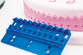 Das Set besteht aus einem Grundkörper, einer Schneidekante und einem Herzausstecher. Mit dem variabel einsetzbaren Kantenschneider lässt sich die Breite der Bordüren festlegen, mit dem Herzausstecher können Sie die Tortenbordüre zusätzlich nach Belieben verzieren.