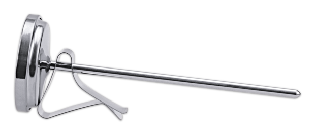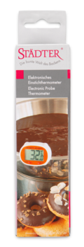 Das elektronische Einstich-Thermometer hat eine leicht lesbare digitale Anzeige, kann zwischen °C und °F umgeschaltet werden und hat einen praktischen Clip zum Anstecken.