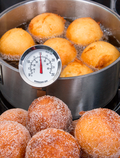 Anleitung: Das Thermometer einfach an den Rand des Topfes einhängen. Es können ca. 150–200 g Fritiergut in einem Kilo Fett fritiert