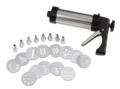 Mit diesem Multitalent bleiben keine Wünsche offen. Ganz einfach und schnell zaubern sie leckeres Spritzgebäck in bis zu 13 verschiedenen Motiven. Zudem können sie mit den 8 kleinen Garniertüllen Cupcakes und Torten mit Icing, Frosting oder Buttercreme verzieren.