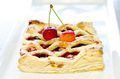 Der Gitterschneider ermöglicht das Zubereiten von Strudel und Blechkuchen sowie das Verzieren von Blätter-, Plunder-, Hefe- und Mürbeteig.