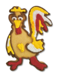 Mit diesem Präge-Ausstecher können Sie im Handumdrehen einen stolzen Gockel formen – komplett mit Krallen, Flügeln, Schnabel, Augen, Kamm und Hahnenfedern.
