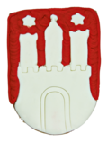 Der Präge-Ausstecher formt das Hamburger Wappen mit Burg, Mariensternen und Stadttor. Sie müssen es nach dem Ausstechen nur noch backen und bemalen.