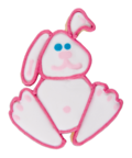 Der ist ja niedlich! Unser Hase hat ganz große Pfoten, ein Schlappohr und ein freundliches Gesicht.