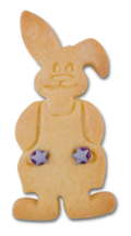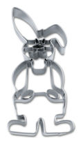 Der Hasenbub steht mit verschränkten Armen, geknicktem Ohr und einem fröhlichen Gesicht da. Dank Vorprägung wird das alles schon beim Ausstechen angelegt.