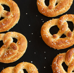 ACHTUNG: Bei der Zubereitung von Laugengebäck immer Backpapier unterlegen.