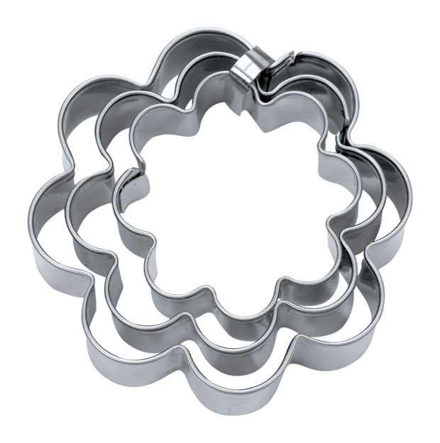 Mit diesem Set gelingen Ihre Terrassen-Plätzchen ganz leicht. Kekse in drei verschiedenen Größen ausstechen und backen. Nun die drei Teile mit etwas Gelee, Marmelade, Zuckerguss oder Nussnougatcreme aufeinandersetzen und nach Herzenslust verzieren – fertig.