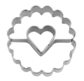 Mit dieser Ausstechform können Sie die Oberteile der beliebten Spitzbuben und Linzer-Plätzchen ausstechen. Zusätzlich benötigen Sie noch den gewellten Ring! Damit können Sie die Unterteile ausstechen. Beide Teile nun backen und mit etwas Gelee, Marmelade, Zuckerguss oder Nussnougatcreme aufeinandersetzen – fertig.