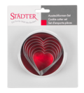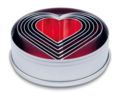 Herzen in sechs unterschiedlichen Größen: Dieses Set platzsparend stapelbarer Ausstecher ist ideal für liebevolles Backen und Basteln.