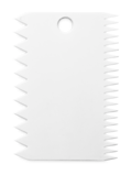 Mit diesem Kammschaber verzieren Sie Ihre Torte in zwei verschiedenen Mustern: fein- und grobgezackt. Besonders zum Verzieren von Creme- oder Sahnetorten geeignet. Das beste Ergebnis erhalten Sie, wenn Sie den Kammschaber im 45°-Winkel ansetzen.