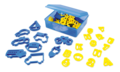 Jetzt können Sie kreativ werden! Die Kiste enthält eine bunte Ausstecher-Mischung mit Buchstaben und Zahlen sowie Fahrzeug- und Sport-Motiven.