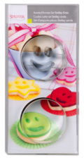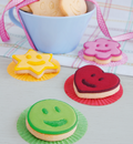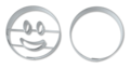 Big smile: Jetzt können Sie Doppelkekse mit einem freundlichen Lächeln backen. Im Set finden Sie einen Kreis-Ausstecher mit geprägtem fröhlichen Lachen und einen Konturen-Ausstecher.