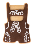 Die typische bayerische Lederhose hat ein Hosentürl, kurze Beine und H-Hosenträger. Unser Trachten-Ausstecher hat all das natürlich auch.