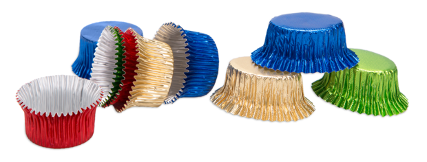 Mit diesen farbenfrohen Pralinenkapseln aus Aluminium krönen Sie Ihre eigenen Pralinen. Ihre Pralinenmasse einfach mit einer Loch- oder Sterntülle in die Kapseln einfüllen.