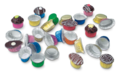 Bunte Aluminium-Kapseln, lebensmittelecht, zum einmaligen Gebrauch.