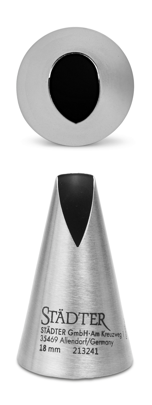 Auswechseln der Tüllen bei gefülltem Spritzbeutel: Verschluss-Schraube am Ansatzstück öffnen und Tülle abnehmen. Neue Tülle aufsetzen, Verschluss-Schraube wieder schließen. Die Tülle sitzt absolut dicht.