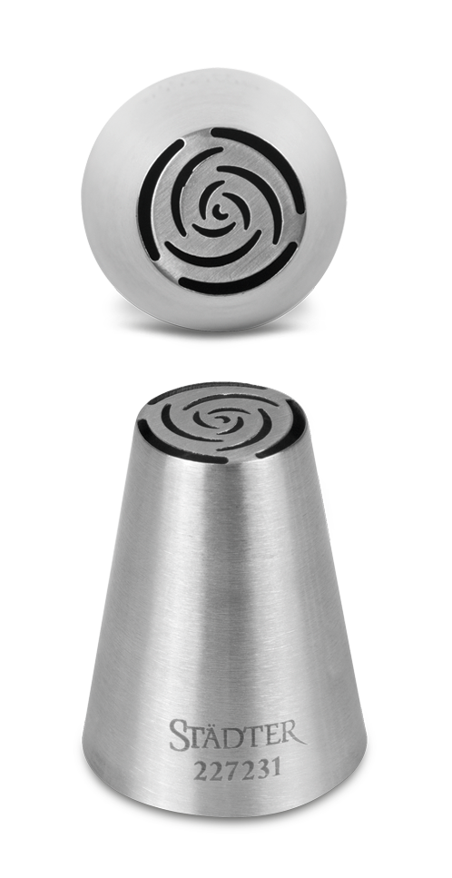 Durch unsere praktischen Adapter können Sie bei gefülltem Spritzbeutel die Tülle wechseln und sofort mit der anderen Tülle weiterdekorieren.