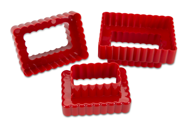 Mit diesen Ausstechformen können Sie ganz einfach kleine und/oder große Terrassen-Plätzchen ausstechen. Die Teile nun backen und mit etwas Gelee, Marmelade, Zuckerguss oder Nussnougatcreme aufeinandersetzen – fertig.