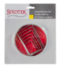 In der abstrakten Kunst gehören Rechtecke zu den beliebtesten Formen. Wenn Sie sie auch ins Repertoire Ihrer Backkreationen aufnehmen wollen, ist dieses Set mit sechs verschieden großen Ausstechern das richtige für Sie.