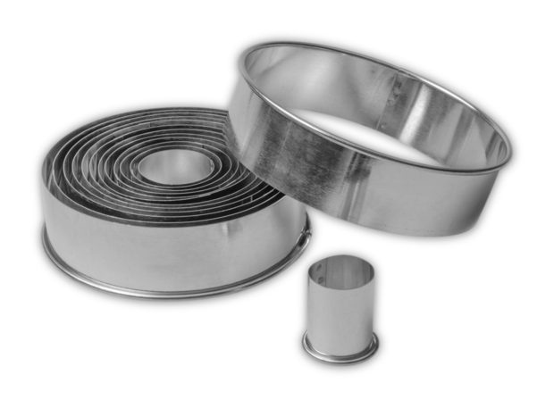 Zum Backen, Dekorieren und Basteln: Mit diesem Set ineinander stapelbarer Ringe können Sie Kreise mit zehn verschiedenen Durchmessern ausstechen.