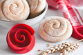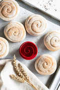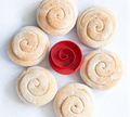 Für das typische Muster den Teig zu Kugeln formen, etwas flach drücken und den Brötchenstempel in den Teigling drücken. Nach der Gehzeit die Brötchen wie gewohnt backen. So verleihen Sie Ihren selbstgemachten Brötchen die typische Roggensemmel-Optik wie aus der Bäckerei.