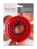 Diese sechs Ausstecher sind so gefertigt, dass sie ohne zusätzliche Verpackung ineinander gesteckt und platzsparend nach Gebrauch wieder im Schrank verstaut werden können.