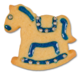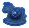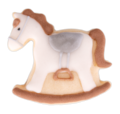 Unser Ausstecher prägt bei dem kleinen Schaukelpferd die Mähne, das Gesicht, den Pferdeschwanz und den Sattel schon vor.