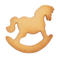 Unser Ausstecher prägt bei dem kleinen Schaukelpferd schon viele Details vor, die nach dem Backen liebevoll dekoriert werden können.
