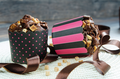 50er-Jahre-Design für Ihre Cupcakes. Ein stilvolles Schwarz-Rosa für Ihre Backideen.