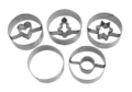 Mit diesen Ausstechformen können Sie Ober- und Unterteil der beliebten Spitzbuben ausstechen. Für die Oberteile stehen Ihnen vier Motive zu Auswahl. Mit dem Außenring können Sie nun die Unterteile für die Spitzbuben ausstechen. Beide Teile nun backen und mit etwas Gelee, Marmelade, Zuckerguss oder Nussnougatcreme aufeinandersetzen – fertig.
