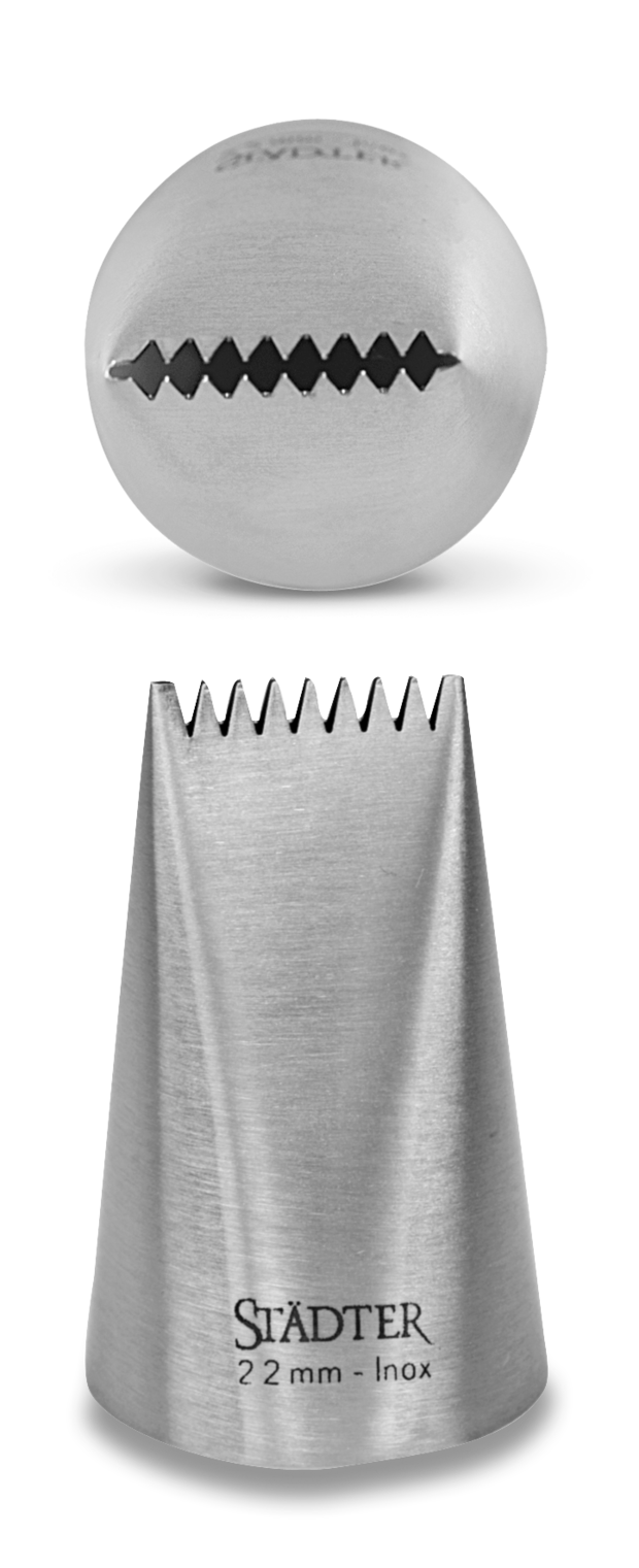 Die Sternbandtülle eignet sich für das Herstellen gezackter und glatter Bänder sowie für das Anfertigen von Korbgeflechten.