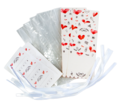 Der Beutel ist aus lebensmittelechtem Polyethylen hergestellt. Die Motiveinleger aus stabilem, bedrucktem Papier.