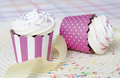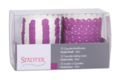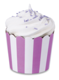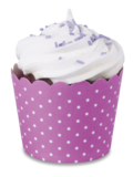 Cupcakes brauchen Farbe. Probieren Sie doch mal verschiedene Kombinationen aus Backformen und Toppings. Hier in Violett-Weiß.