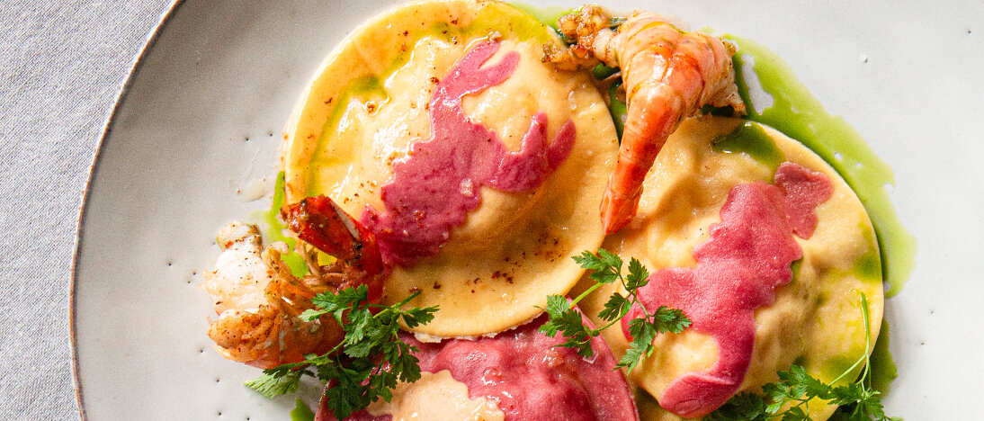 Die Füllung mit den restlichen Zutaten abschmecken, dann in einen Spritzbeutel füllen. Einige Minuten bevor die Ravioli gefüllt werden, sollten diese aus dem Kühlschrank genommen werden.